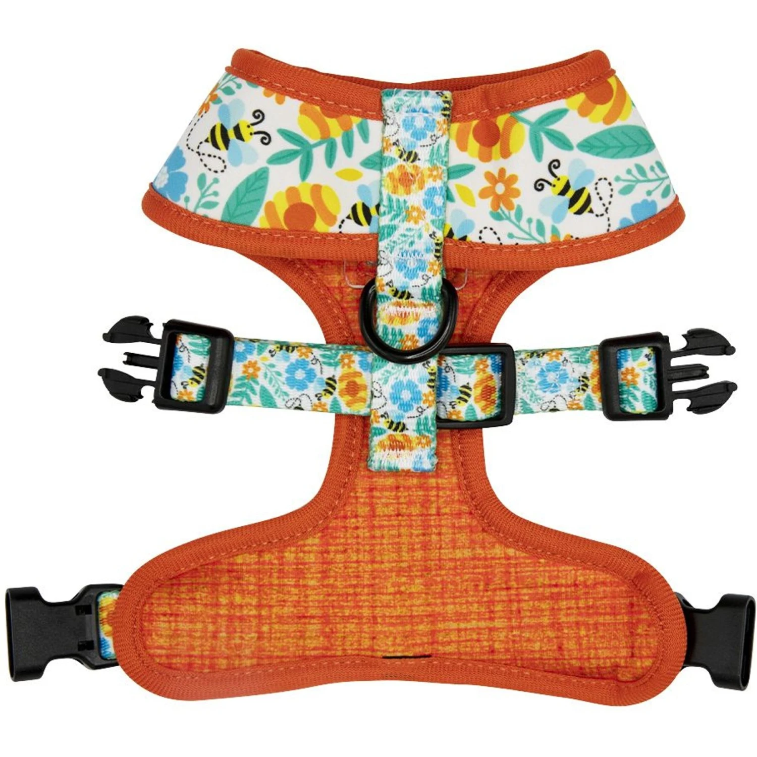 - Both sides of the harness feature a custom-printed neoprene fabric.