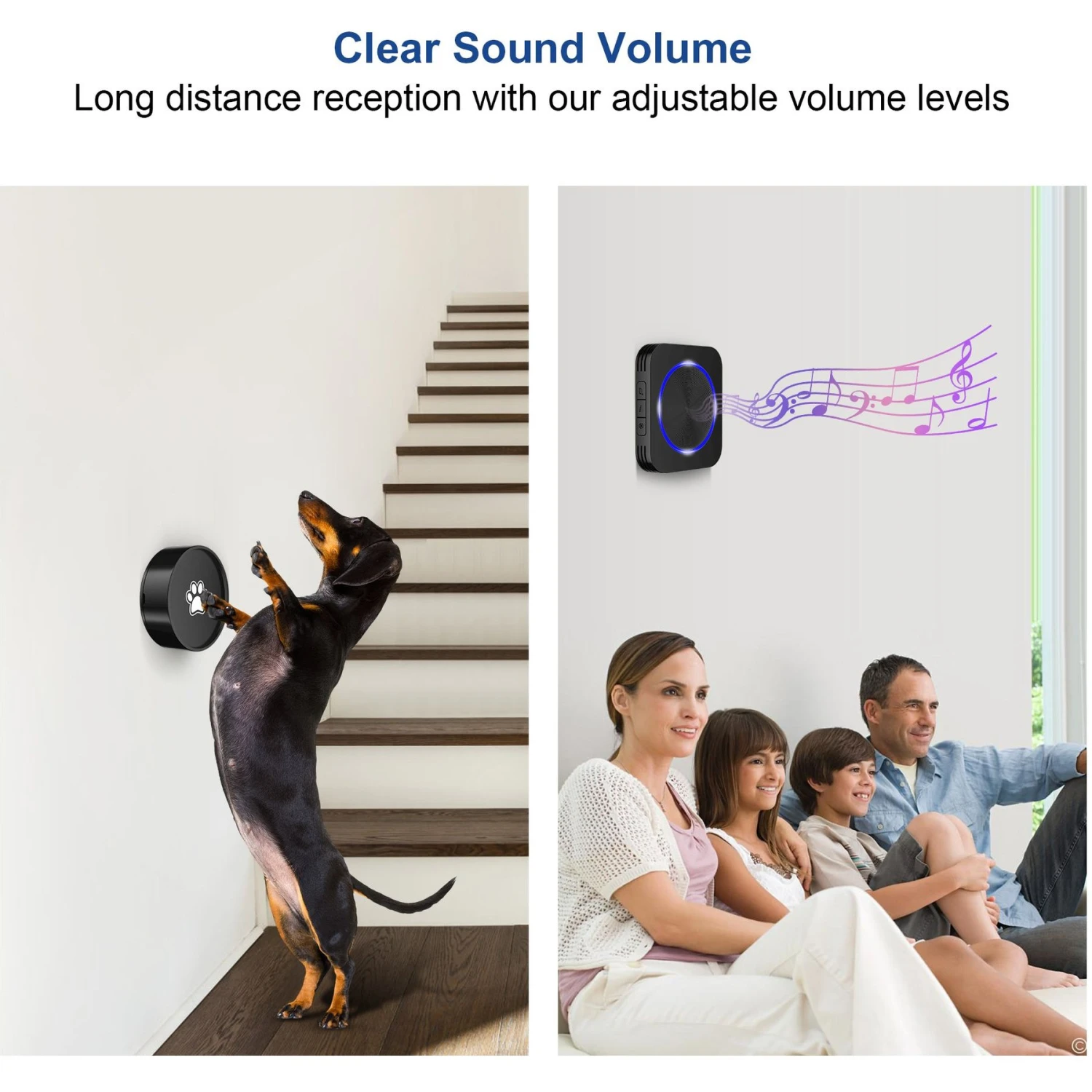 - Created as a wireless doorbell that prevents your pooch from being left outside after she presses the transmitter button.