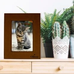 904 Custom Personalized Name With Heart Leatherette Pet Picture Frame