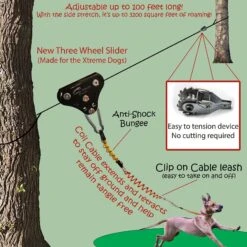 Tumbo Trolley Dog Xtreme Stretching Coil Cable With Anti-Shock Bungee Aerial Dog Tie Out, Black