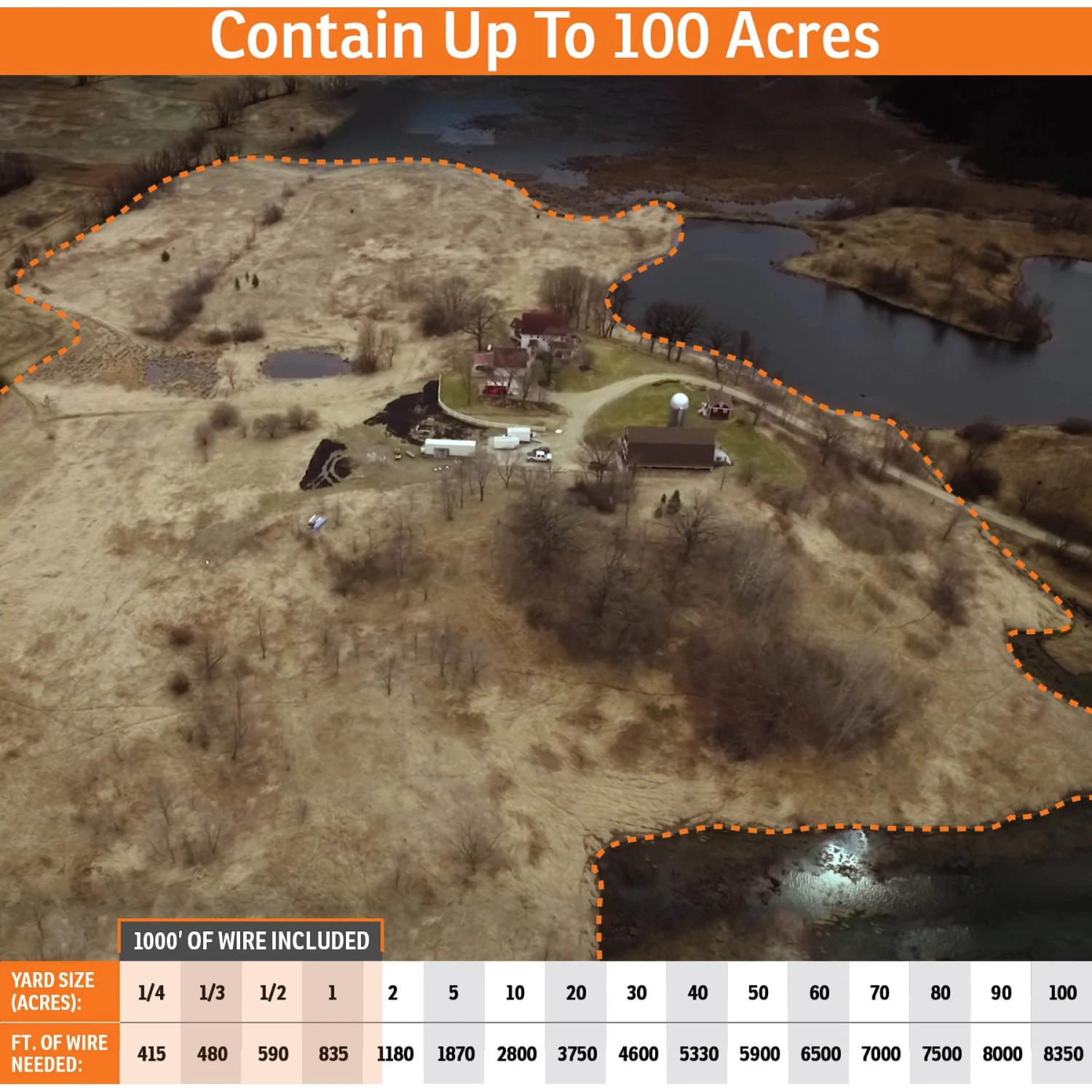 - Includes 1,000 feet of wire and 100 flags to contain an area as large as 1 1/3 acres.