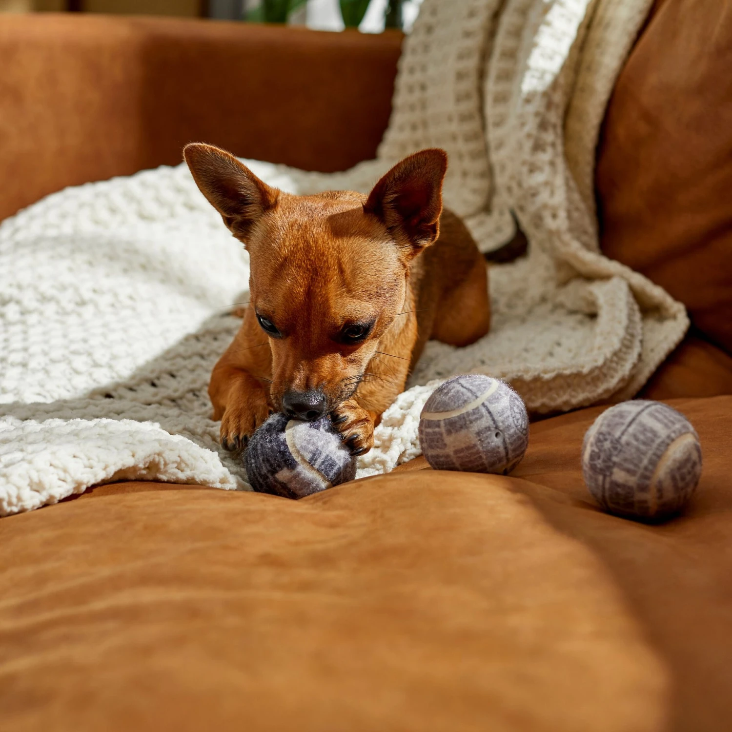 - Built-in squeakers in these balls get your dog’s attention and add to the fun.