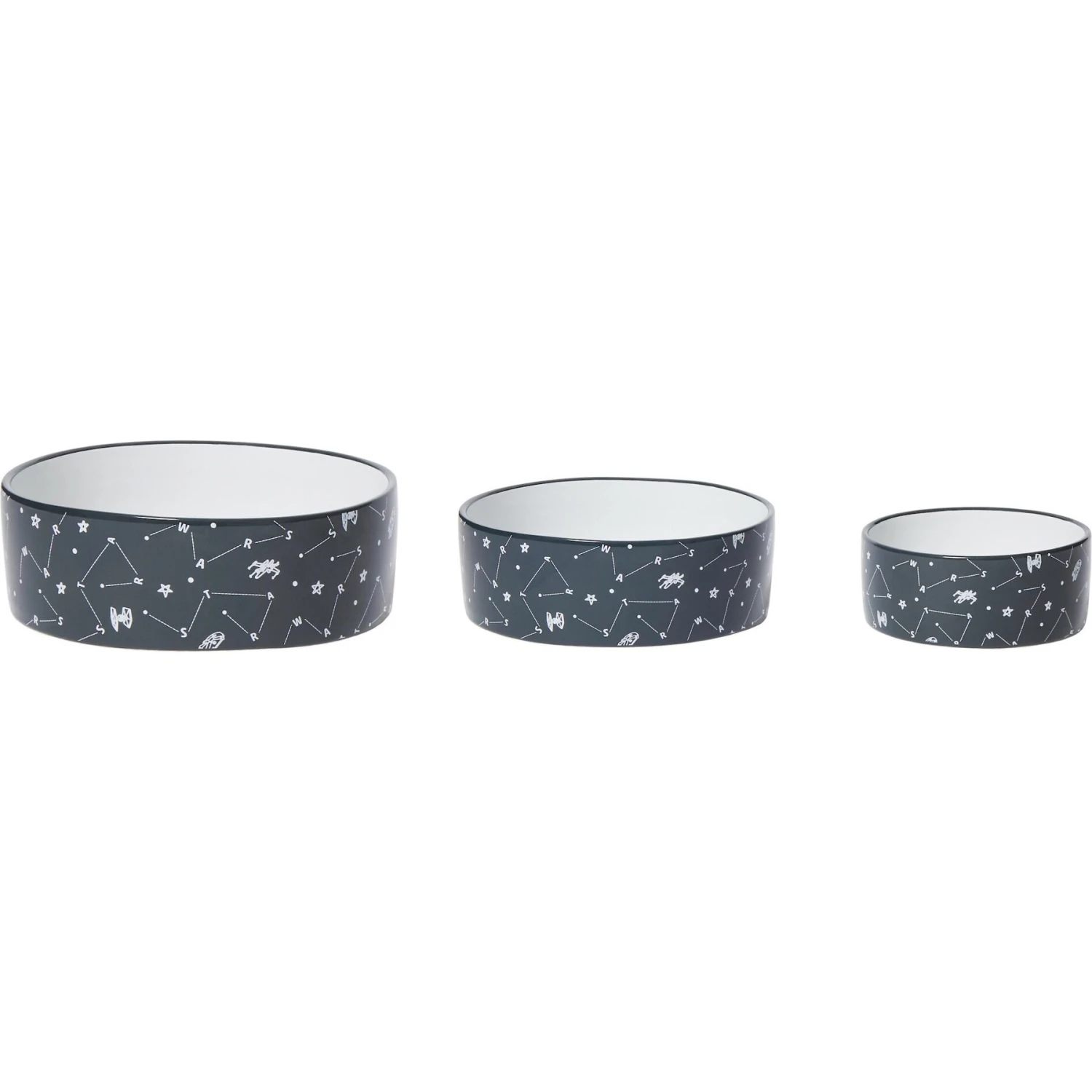 - Dog and cat bowl with a navy, STAR WARS pattern featuring X-Wings, Tie Fighters and the Millennium Falcon. Matching cat bowl available.