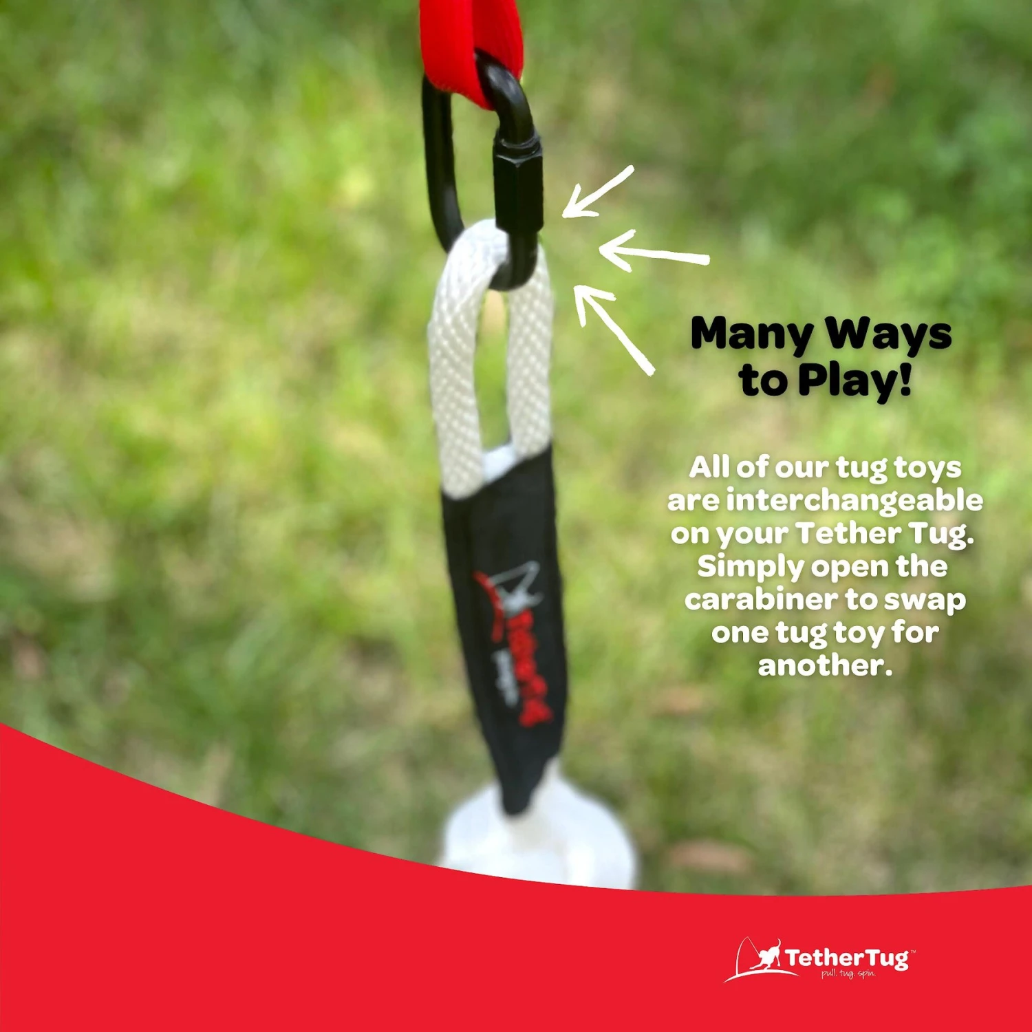 - Great for tugs, pulls, twists and spins.