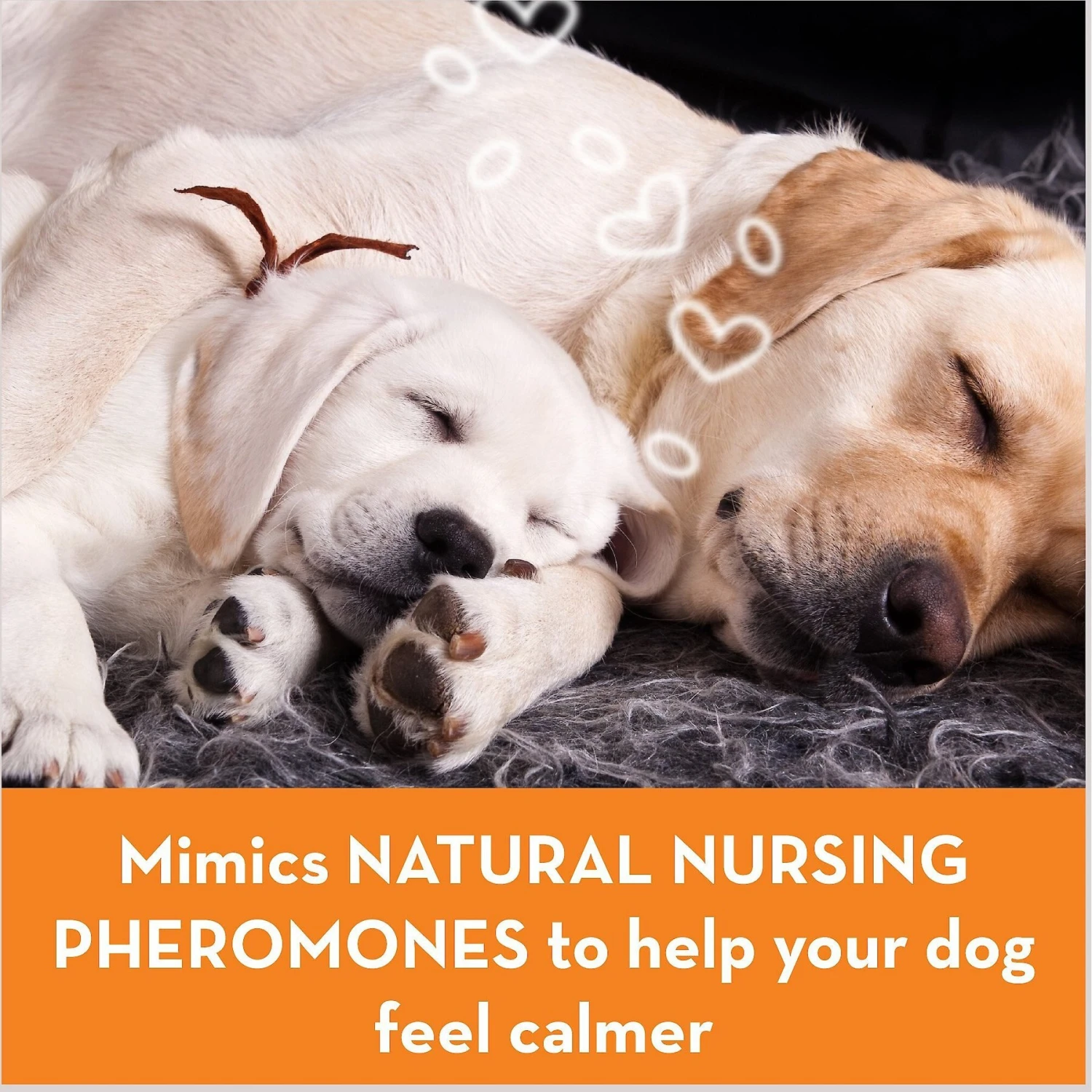 - Mimics a mother’s natural pheromones to calm down dogs that are experiencing distress