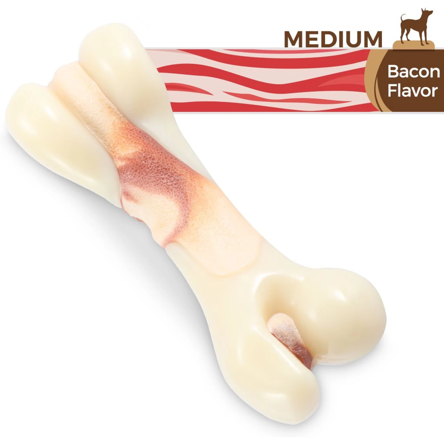 - Features a tempting bacon scent to peak your four-legged friend’s interest and deliver chewing satisfaction.