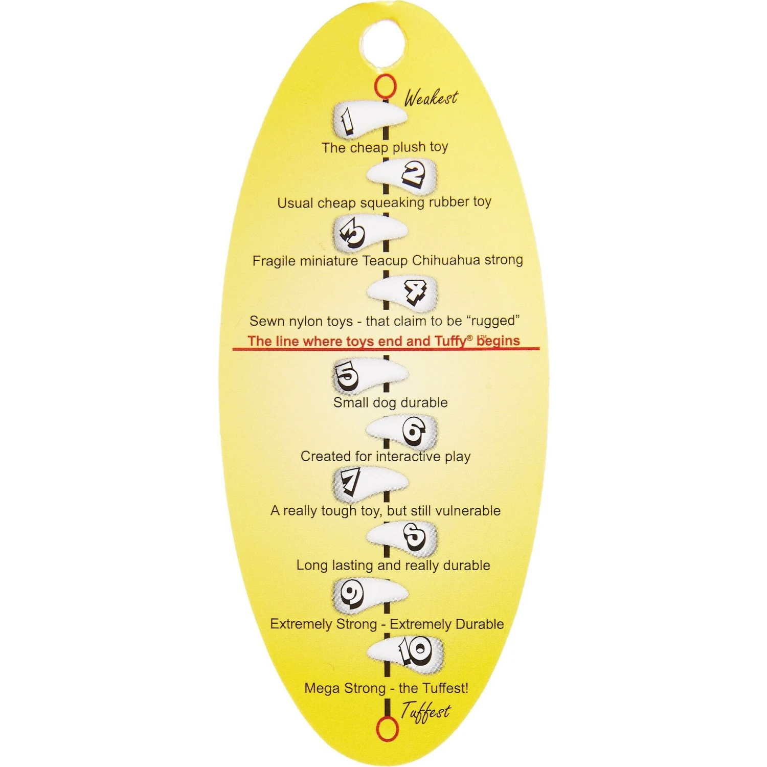 - Made with multiple layers of material that are bonded and sewn together to make one “Tuff” Layer. Most toys have just one seam to hold the toy together, Tuffy’s has 7. Webbing is sewn around the edges of the toy and then the edges are sewn together to make each toy extra Tuff. Each toy is then stuffed with safe, non-toxic fiber and has soft edges that are safe on gums.