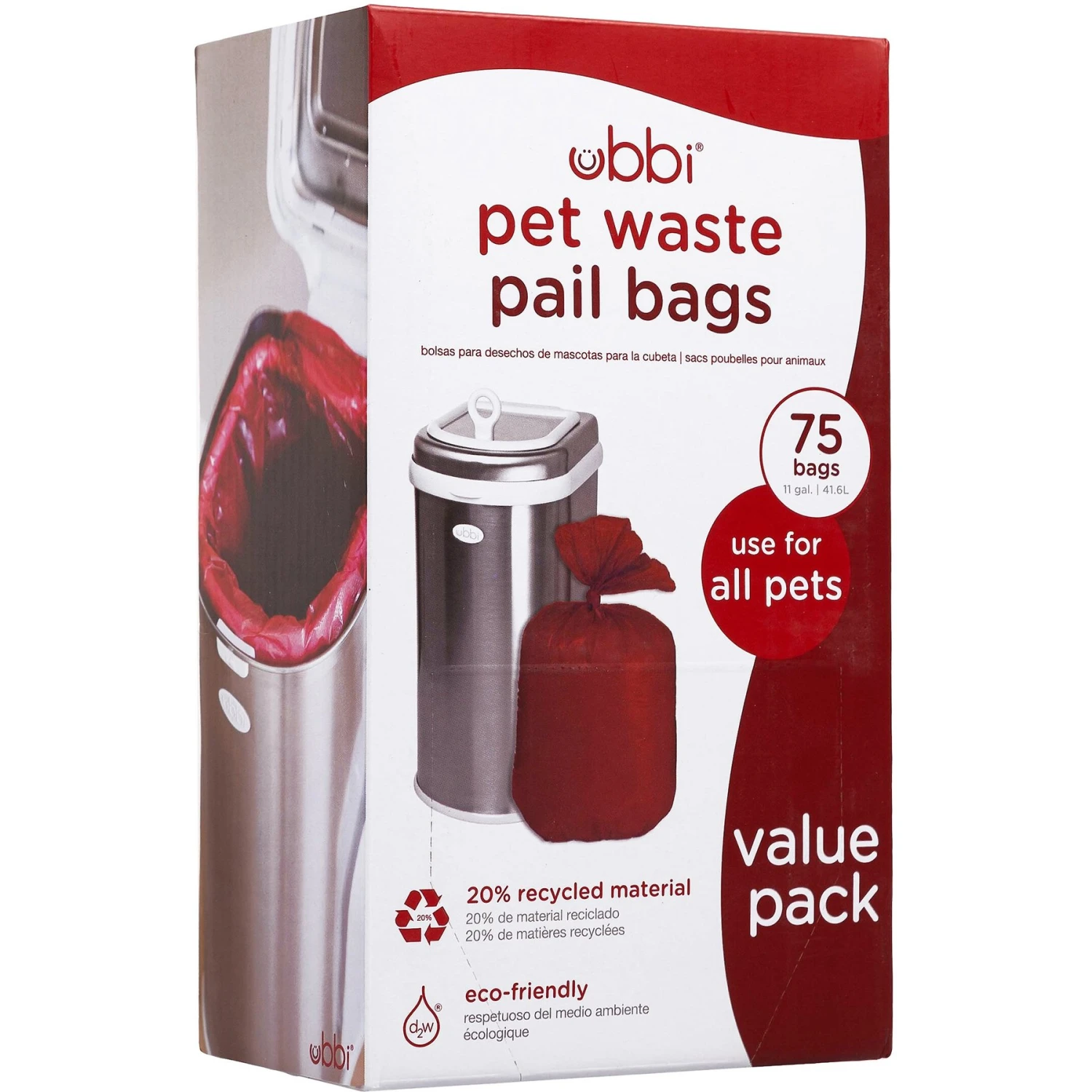 - Disposable waste bags have a 13-gallon capacity and fit paw-fectly into the Ubbi waste pail (sold separately).