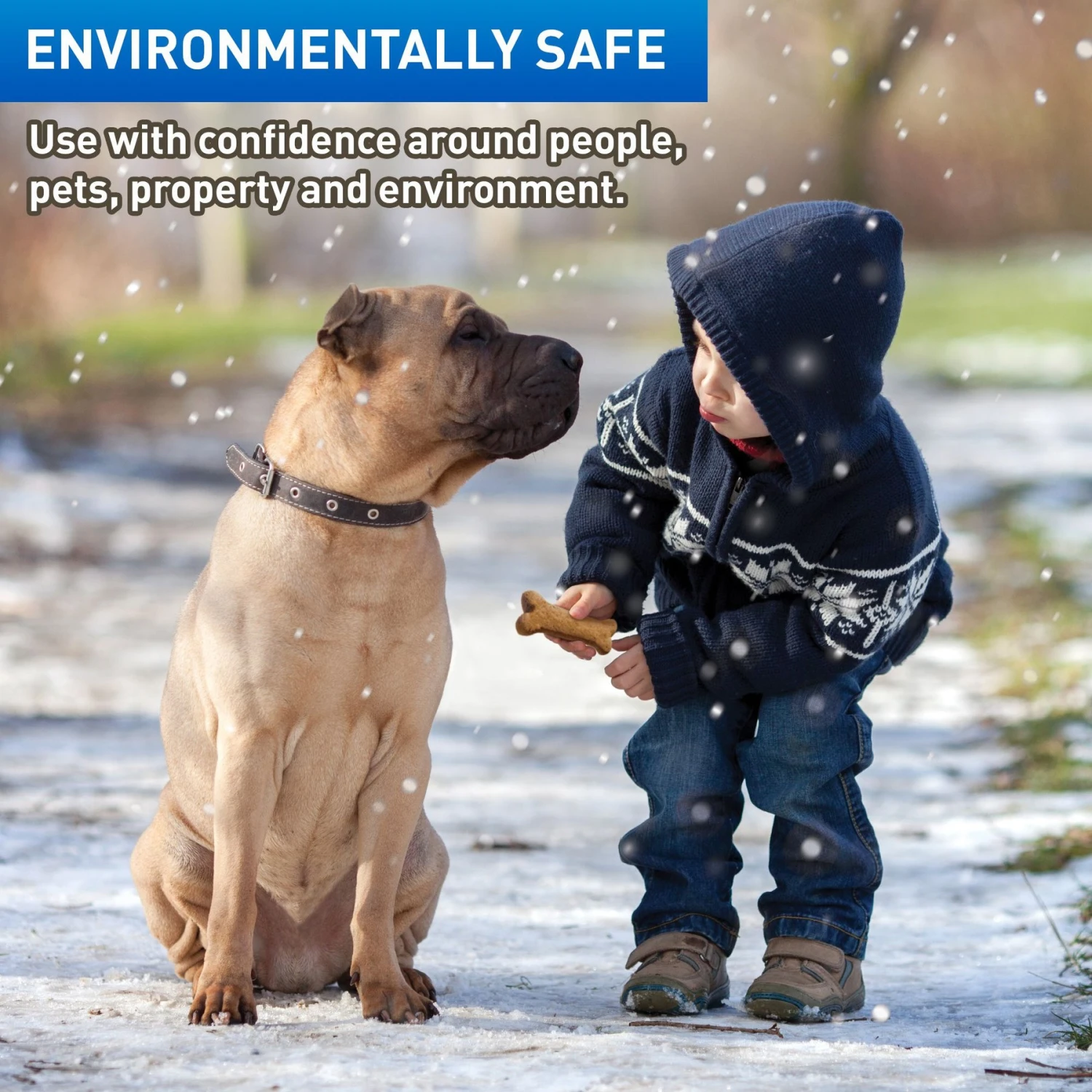 Safe Paw PetSafe Ice Melt for Dogs & Cats, 35-lb pail — Safe Paw PetSafe Ice Melt for Dogs & Cats offers an innovative way to clear your driveways and sidewalks of winter snow and ice. While most ice melters contain salt, which can harm pets, humans, and the environment, Safe Paw is completely salt-free and recommended by veterinarians. It uses a patented, dual-effect compound that works with a two-way timed-released action. First, it starts melting the ice instantly while breaking up the surface tension, and then it penetrates and destabilizes the ice to speed up melting—all while offering slip protection with a proprietary traction agent.