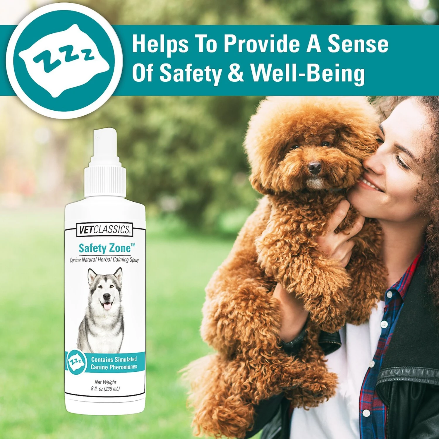 - Offers calming support for stressful occasions such as fireworks, traveling, vet visits and grooming.
