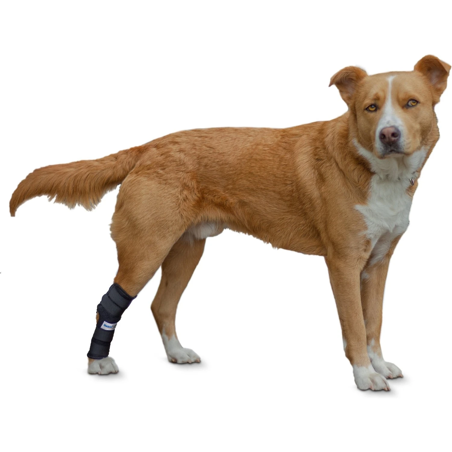 - Crafted with comfortable neoprene materials and touch-fastener closures that fit around your pooch’s hock.