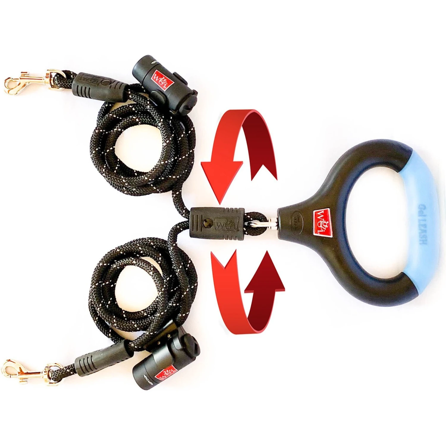 - The 360-degree untangling leash has reflective rope leads for added safety and visibility at night.