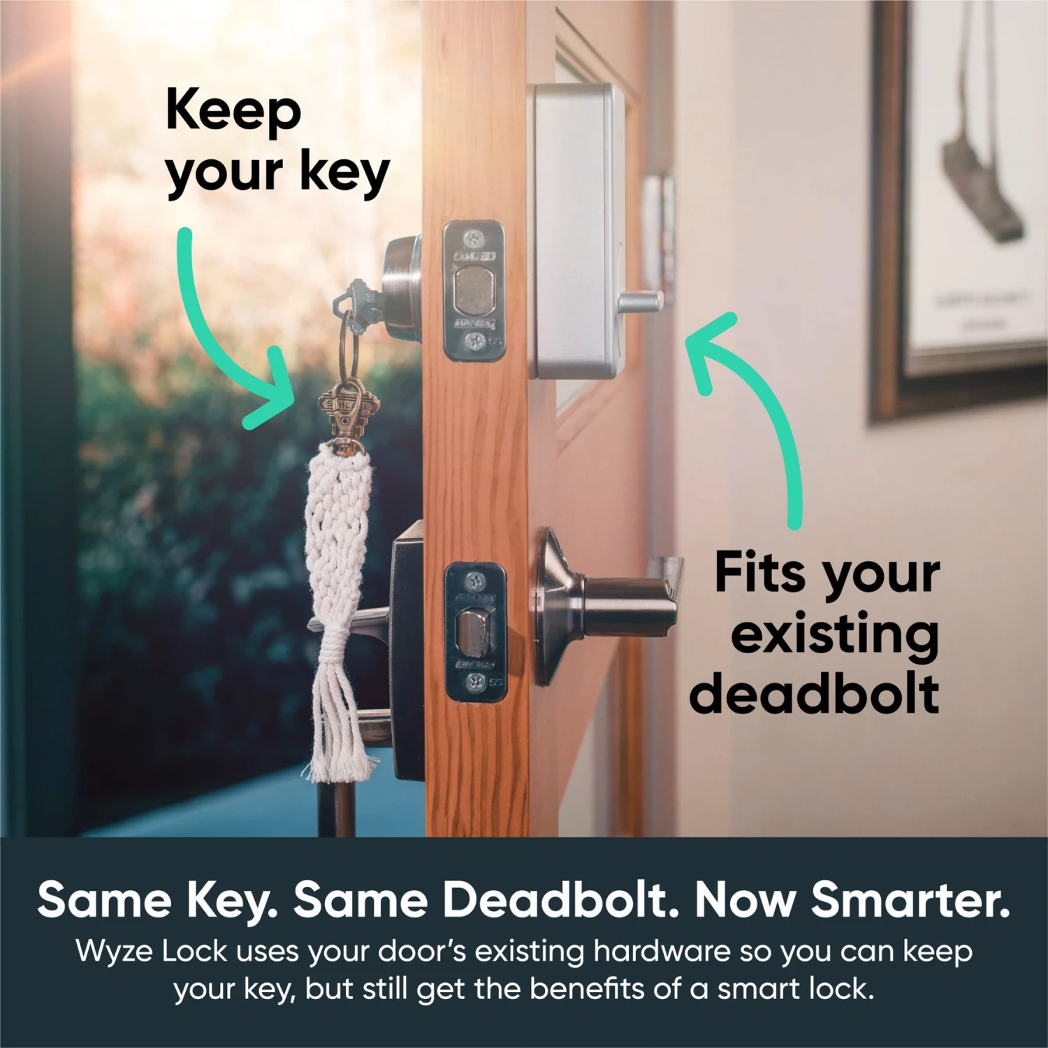 - Lock or unlock your door from anywhere using the Wyze app.